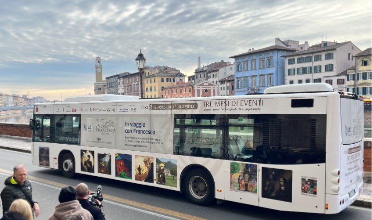 “San Francesco 2026” viaggia per Pisa: un autobus che porta in città un messaggio di pace e fraternità